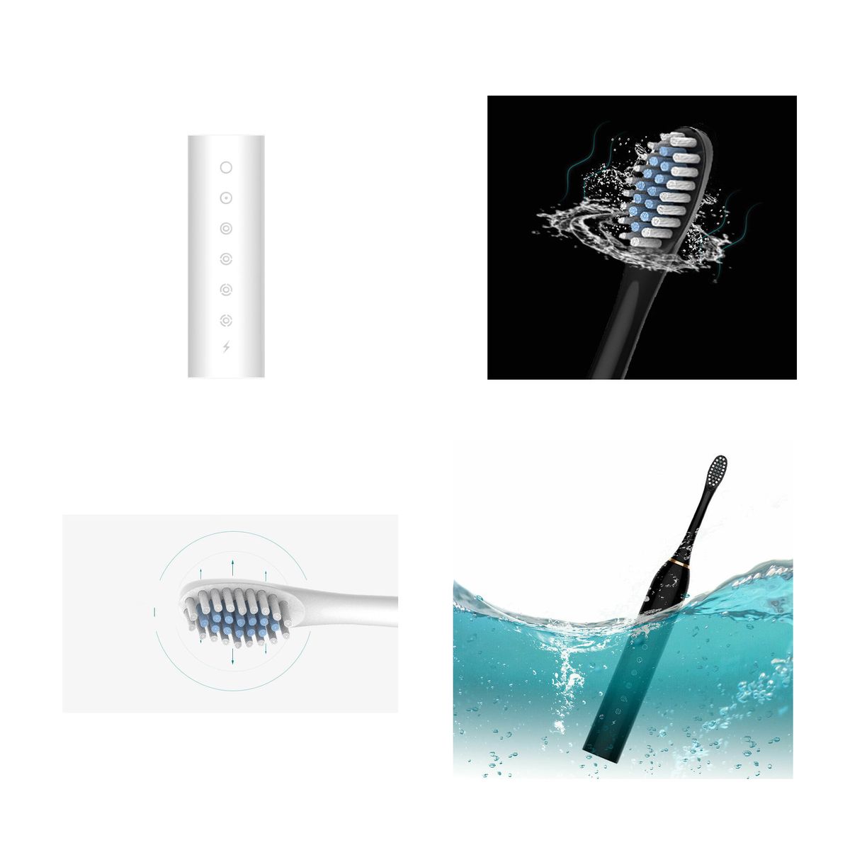 This toothbrush is made of ABS material and is safe and non-toxic, including four brush heads to replace. USB connector charging, full once, can last 15 days; take it when traveling or on business; it is very useful and portable. Soft bristles do not hurt the gums.